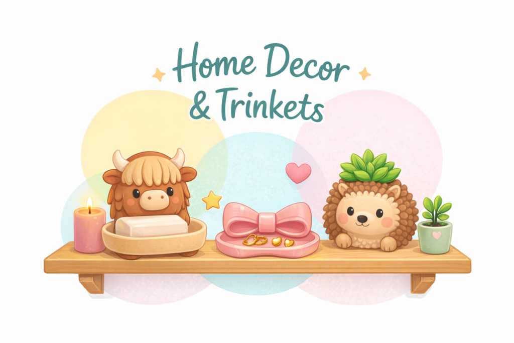 From functional pieces like soap holders to decorative trinket dishes, this collection is designed to bring charm into everyday spaces. Each item is created in our signature playful style, blending usefulness with personality.
