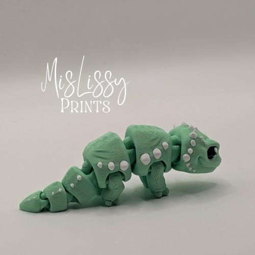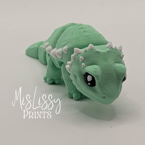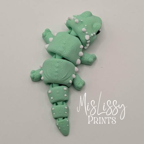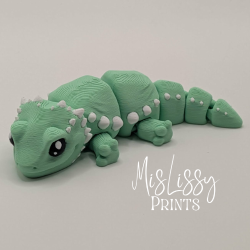 This articulated bearded dragon features a soft green body with white spikes, giving it a gentle, approachable look that’s easy to love. With smooth-moving segments and a relaxed expression, it has just the right balance of realism and charm.