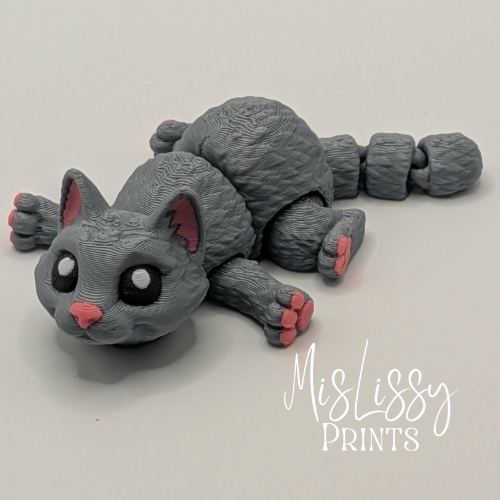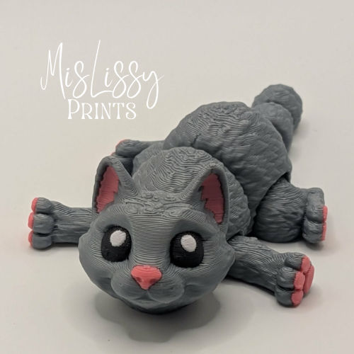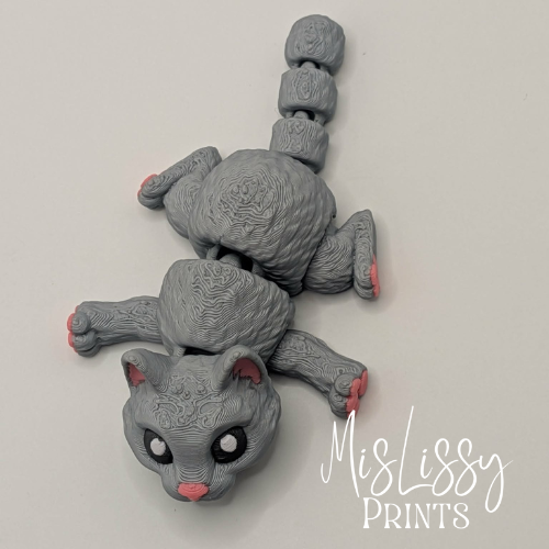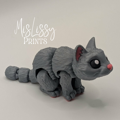 This articulated gray cat captures the independent yet playful personality that makes cats irresistible. Its segmented body allows for smooth movement, giving it a lifelike feel whether displayed or handled.