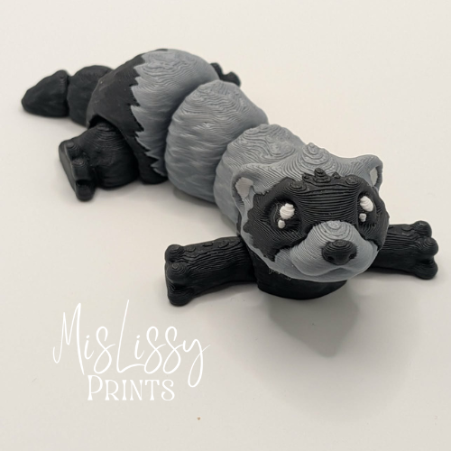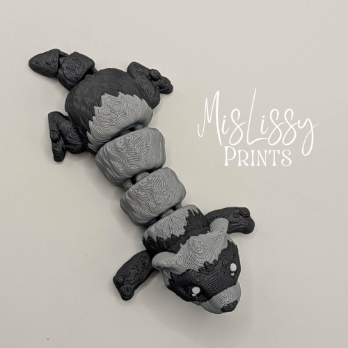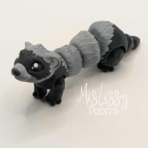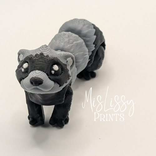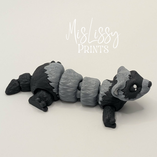 This articulated ferret features classic black and gray coloring with a distinctive black mask, capturing the playful and curious nature ferret lovers know and adore.