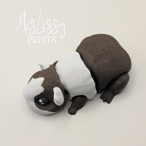 This brown and white guinea pig captures the charm of a beloved little pet in an articulated design that adds gentle movement and character. With its classic coloring and rounded shape, it’s an easy favorite for animal lovers and small-pet enthusiasts alike.