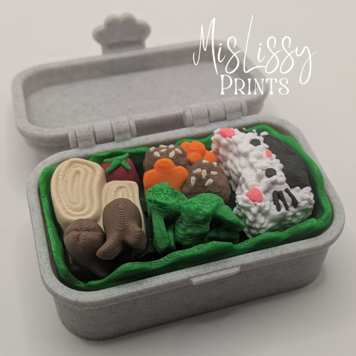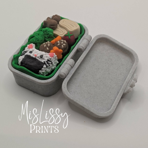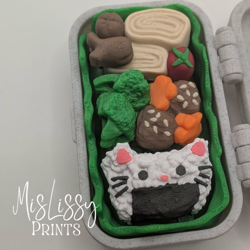 Inside you’ll find kitty rice, veggies, and noodles, all tucked neatly into their own sections. Every compartment has its own tactile click, making this piece especially engaging and hard to put down.