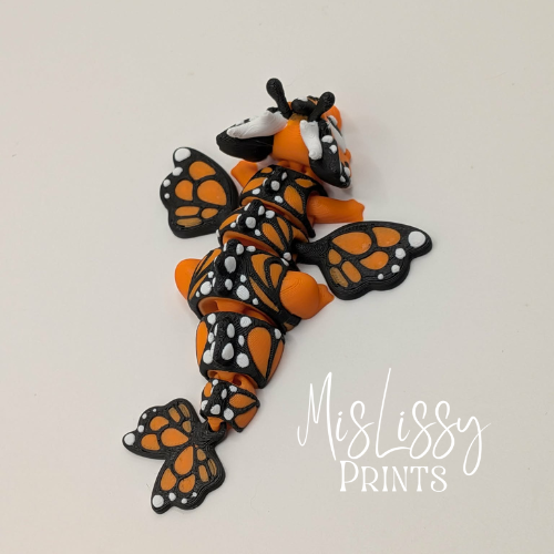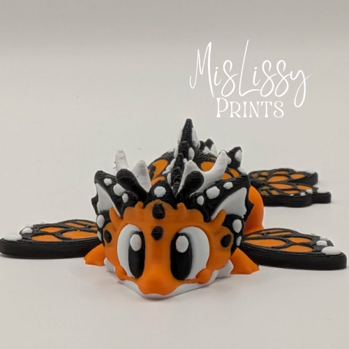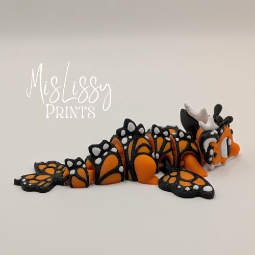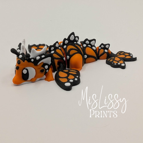 • 3D-printed dragon figurine with beautifully detailed monarch-inspired wings