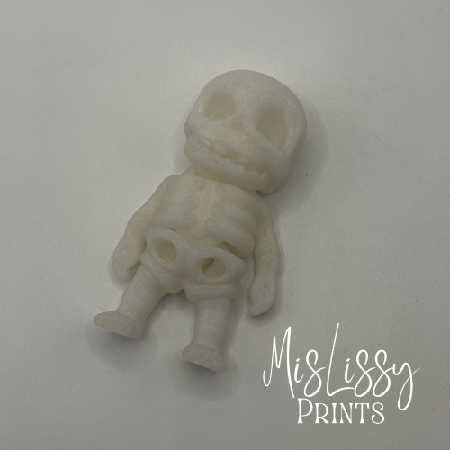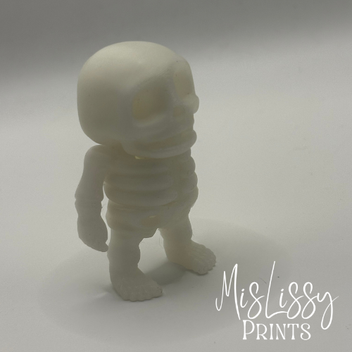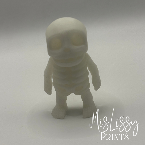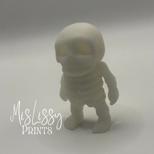 Bring a little spook and a lot of charm to your collection with this glow-in-the-dark skeleton. Printed in a luminous filament, it shines in the dark, turning any shelf or desk into a tiny, playful scene straight out of legend and lore.