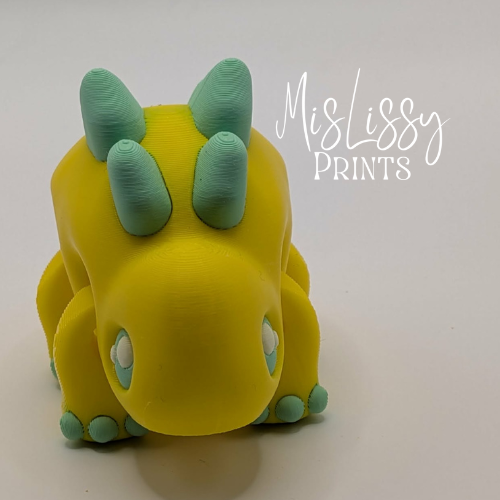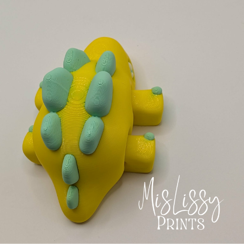This articulated stegosaurus features a cheerful yellow body with green spikes and detailing, giving a fresh, playful spin on a well-loved dinosaur.