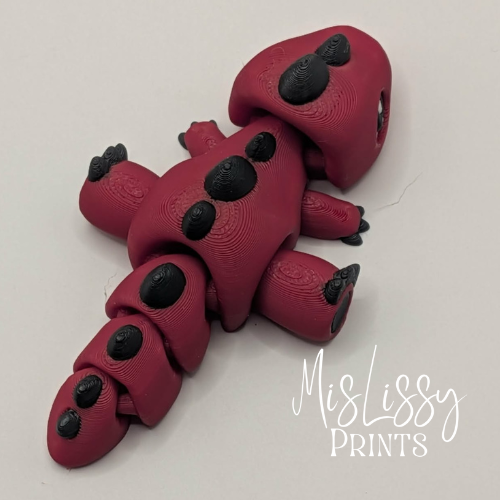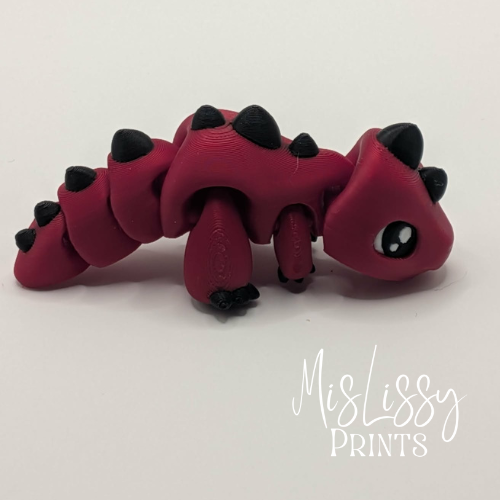 This articulated T-Rex features a vibrant red body with striking black spikes, capturing the power and presence of one of the most iconic dinosaurs. Its segmented design allows for smooth movement, giving it playful personality while still looking impressive on display.